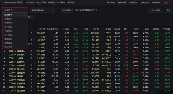 wh5财务选股有别与传统的技术面选股,可直击企业经营状况,通过对和企业经营息息相关的市场表现、盈利能力、现金能力、管理能力、银行专项等多方面指标进行排名分析,逐步排除业绩表现差或表现平庸的企业,选出各行业内竞争力强、适合长期持有的优质股票。