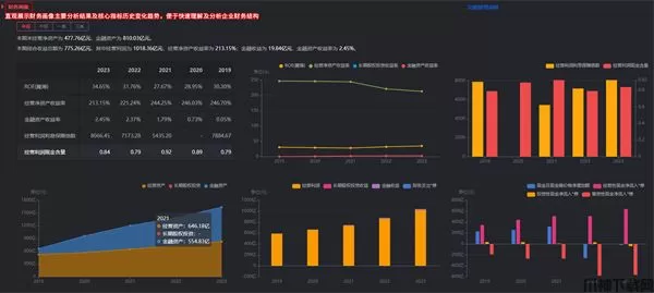 wh5基于管理用财务报表和科目的分类重组,对企业的资产、负债、收益和现金流进行了结构化处理,直观展示企业经营性资产负债与金融性资产负债的比重关系、衡量企业利润来源构成、重新搭建三表勾稽关系。