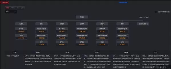 利润滤镜功能分别计算了无滤镜的EPS0(净利润/股本)数值和5个EPS调整值,五大滤镜,为筛选和甄别优质企业提供了辅助决策支持。