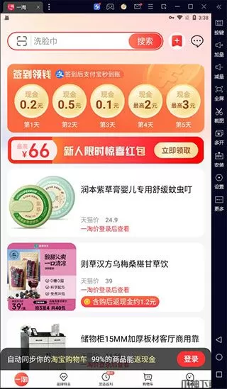 一淘电脑版是需要借助模拟器在电脑上运行的一款线上优惠购物软件。