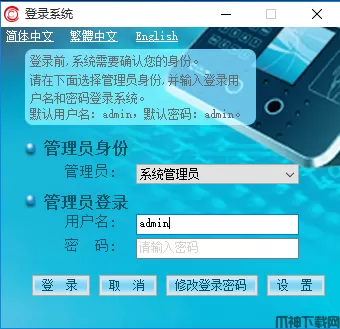 4、打开汉王考勤管理系统服务端输入默认登录密码admin;
