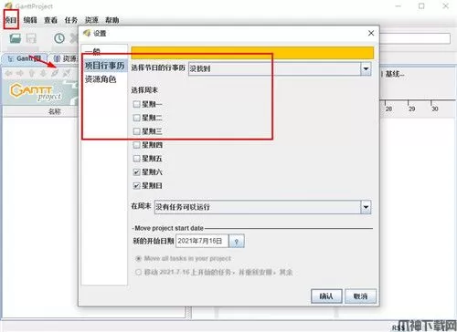 3、点击“查看设置”在甘特图设定功能中,还允许您设置项目开始结束时间,也可以显示周末样式,可以显示网格颜色