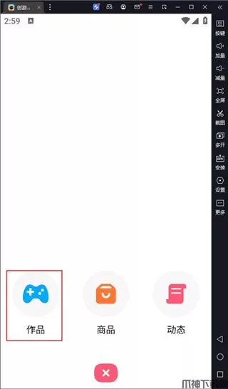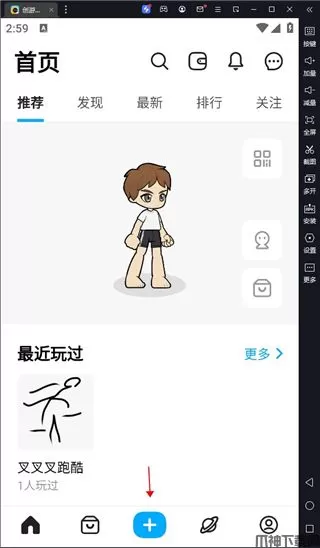 1、在本站下载创游世界电脑版后点打开,点击下方+号;