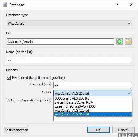 数据类型选择“System.Data.SQLite”,点击文件夹按钮,选择数据文件,并在Password一栏内输入已保存的密码然后点击“OK”按钮即可连接已有的数据库。