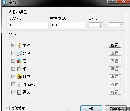 点击“Add column”按钮,添加第一个字段,字段名为ID,数据类型为Text,将主键前的复选框打钩,并点击“OK”按钮,如下图所示: