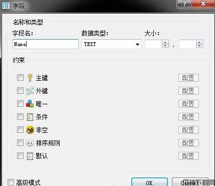 点击“Add columns(Ins)”图标以便添加另外一个列,字段名为Name,数据类型为Text,将非空前的复选框打钩,并点击“OK”按钮,如下图所示:
