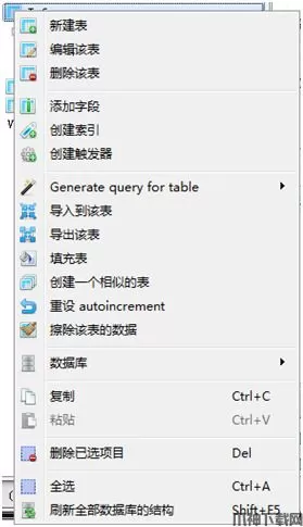 如果需要对数据库中的表进行修改,对要修改的表右击,可以进行各种操作,如下图所示: