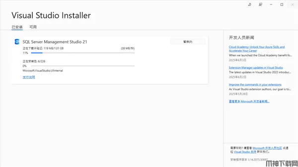 1、双击【vs_SSMS.exe】开始安装SQL Server Management Studio。