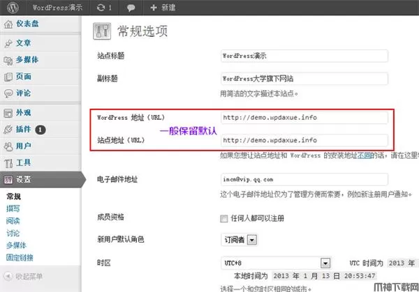 都很简单,只需注意,一般不要更改 WordPress 地址 和站点地址,除非你要换域名