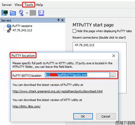 打开MTPuTTY,进入Tools->PuTTY location,选择上面putty的安装目录即可。