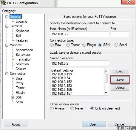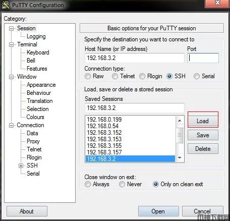 3、MTPutty 保存设置,先load你指定的ip。