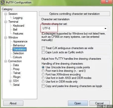 4、然后选择左侧目录中的windows->translation 再在右侧选择utf-8编码。