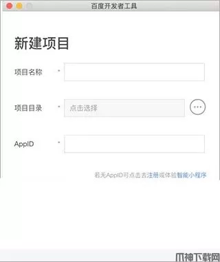 4、点击新建按钮弹出新建项目弹框,点击输入项目名称、目录以及APPID即可进行创建;
