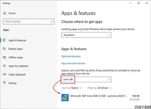 1、.NET 使用 Windows“应用和功能”对话框来删除各版 .NET 运行时和 SDK。 下图显示了“应用和功能”对话框 。 可以搜索 core 或 .net 来筛选和显示安装的 .NET 版本 。
