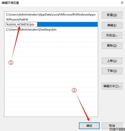 10、变量输入【%JAVA_HOME%\bin】,点击确定。