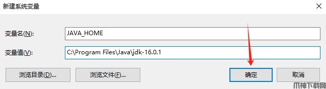 变量值:C:\Program Files\Java\jdk-16.0.1 (变量值是JDK的安装路径)