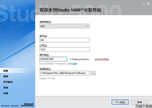 2、以虚拟光驱或者右键解压安装文件“RSLogix5000_V10.7-V28.00.iso”,运行“Setup.exe”,输入任意姓名,输入序列号:2022007546