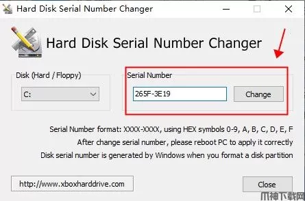 7、以管理员身份运行HardDiskSerialNumberChanger.exe,将磁盘序列号更改为265F-3E19,然后重启;