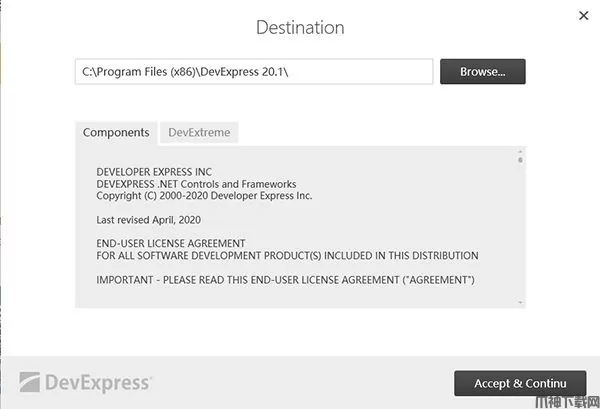 3、点击浏览选择安装路径,点击accept;