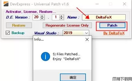 6、双击运行DevExpress_Universal_Patch_.exe注册机点击patch即可,即可完成破解;