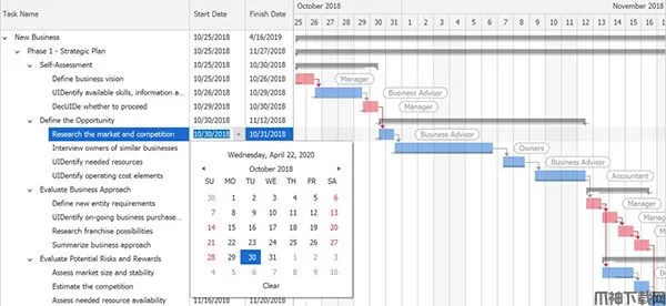 我们的WinForms Gantt控件现在支持交互式编辑。用户可以在图表和任务区域中编辑任务。在任务区域中,用户可以调用单元格编辑器来更新任务的开始/结束日期,进度或持续时间。在图表区域中,用户可以通过拖放将任务移至新的时隙,更新进度或更改相关性。图表区域中的更改会自动反映在任务区域中,反之亦然。