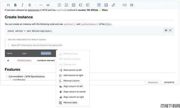 4、Toast UI Editor 是一款利用 JavaScript 和 jQuery 开发的块编辑器。它支持多种文本字体和大小,还可以使用 Markdown 或 WYSIWYG(所见即所得) 编辑模式
