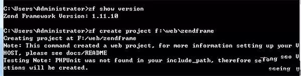 7、输入zf create project f:\web\zendframe 就在我的php环境下创建了zendframe项目