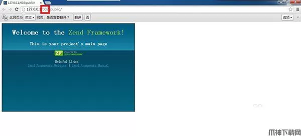 9、恭喜你,在地址栏输入http://127.0.0.1/zendframe/public显示界面,表明zend framework配置成功!