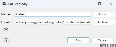 2、然后输入网址:https://download.eclipse.org/technology/babel/update-site/latest/
