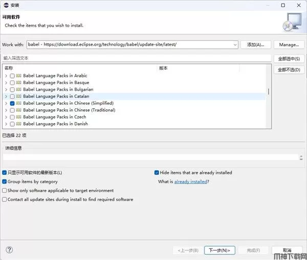 这里需要注意根据用户自身的版本选择,毕竟这个插件是根据用户本身的eclipse版本决定的,如果用户的是新版或者旧版可以到http://www.eclipse.org/babel/downloads.php寻找自己需要的汉化包。
