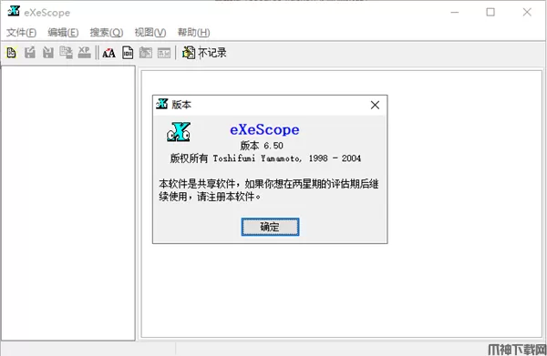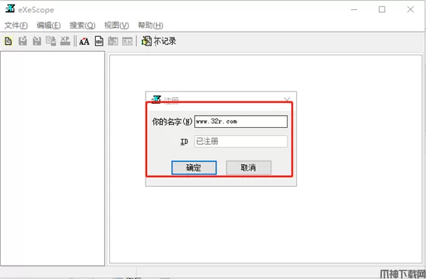 2、双击运行eXeScope.exe程序,可以看到软件已经成功汉化,但还未注册;