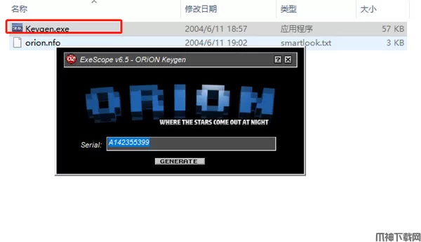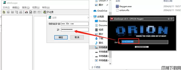 1、在本站下载解压,得到exescope 6.50简体中文版程序和注册机;