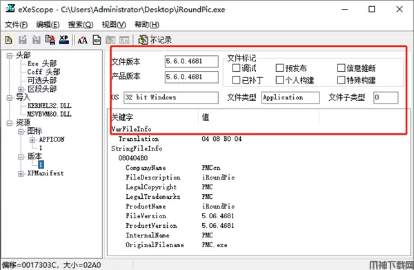 4、你可以自由修改程序的设置,如:文件版本、产品版本、文件标记等信息。