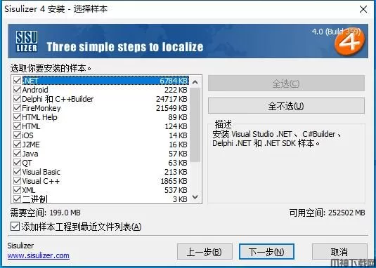 3、选择你要安装的样本,这里已经为我们默认全选了,如果没有不需要的可以直接点击下一步。