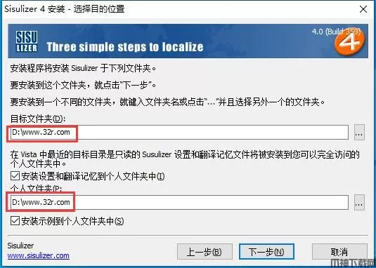 6、最后再设置一下选择目的位置文件夹,设置完后,一直点击“下一步”就开始安装了。