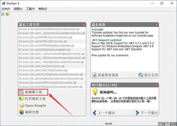Sisulizer4官方版是国内外非常有知名度的一款软件汉化工具。该软件由德国sisulizer公司开发,不仅拥有帮助将Sisulizer集成入创建过程的命令行工具,还拥有用ASP,JAP和PHP语言编写的Web应用程序本地化功能,通过本地化服务器数据库可使用基于服务器的翻译记忆功能和机器翻译引擎。此外,它能够将英文软件转化为中文,还可以将其他外语软件汉化成中文界面。软件的操作并不复杂,我们首先建立一个工程,导入所有需要汉化的文件,然后点击开始汉化就会对软件内部资源进行修改,从而达成软件汉化的目的。如果在汉化的过程中,没有使用汉化词典,那么有可能在软件汉化后需要手工汉化一次。