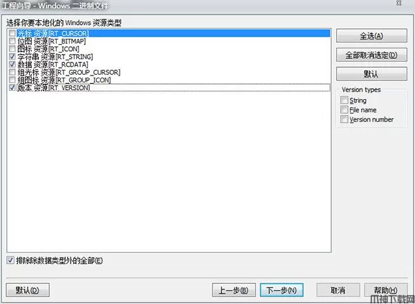 5、在本地化的资源类型选择项中,我们可以选择一些最主要的对象进行汉化,也可以点击全选按钮。