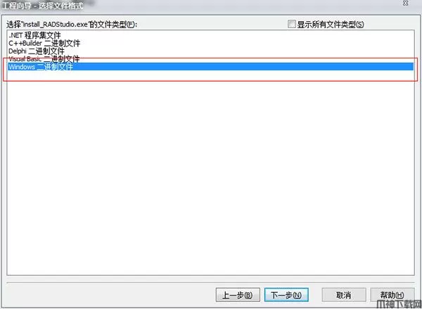 4、软件会自动识别此程序的语言类型,比如我刚才选择的那个程序即为一个windows二进制文件,然后点击下一步,当然可能程序的自动识别并不是最准确的,如果你确切地知道某程序的编写语言,你也是可以自定义的。