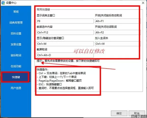 提示:首先点击需要修改的设置,按下新的快捷键即可。