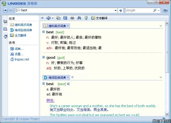 灵格斯词霸官方版是一款简单小巧、简明易用的词典与文本翻译软件,最简单直观的使用方法,拥有超强的定制性,支持自定义词典安装,满足各种专业用户定制自己的私人字典,官网同时还提供超过80种语种和各类百科全书、海量专业词典免费下载。