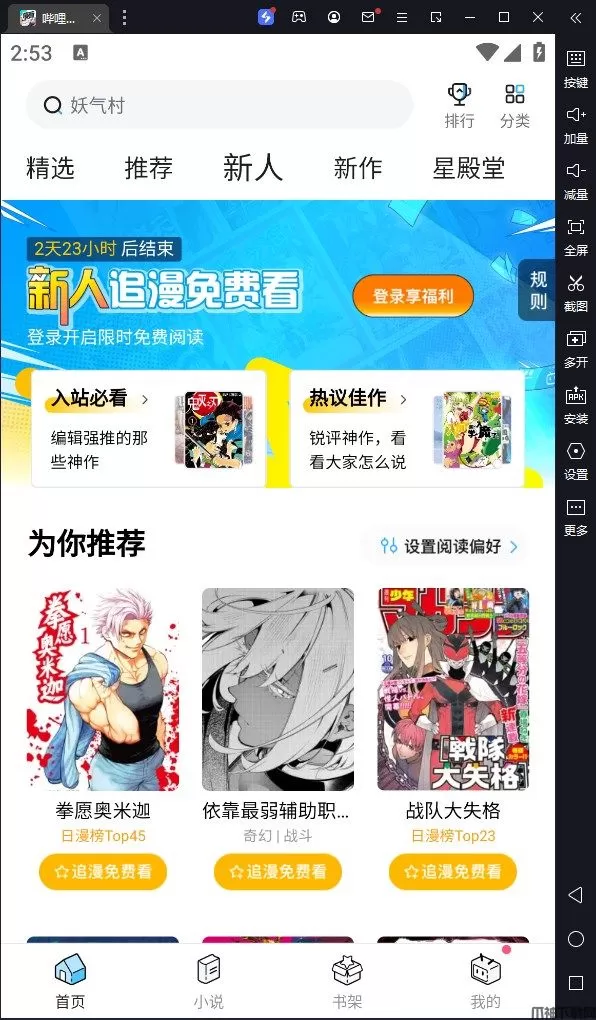 哔哩哔哩漫画电脑版是借助安卓模拟器而运行的一款看漫画软件,该软件依托B站二次元漫画、动漫资源为基础,提供国内外最热门的漫画资源,能给予用户一整套漫画高端阅读体验。