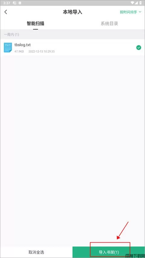 2、进入到本地导入界面后,选择你的TXT文档,点击“导入书架”就能够导入啦。