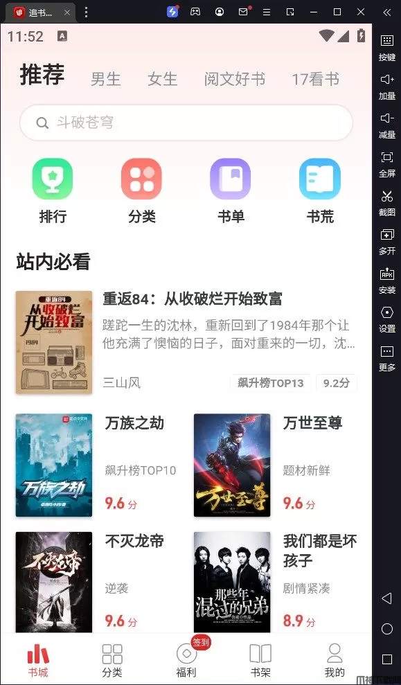 追书神器电脑版是借助安卓模拟器而运行的一款小说阅读软件,该软件汇集了丰富的小说资源,种类丰富,分类详细,更新速度快,并及时为你推送和更新最新的章节。同时还有着光速追更提醒,多维推荐送好书,以及集吐槽书评交友等多位一体的高能社区,是一款超好用的网文小说电子书追更神器。