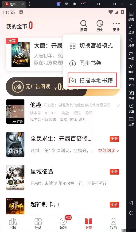 2、接着上方更多中的扫描本地书籍;