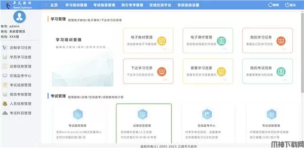 提供集团化上下级别管理模式断电、死机、防作弊等保障机制考试和学习可相互绑定也可分开