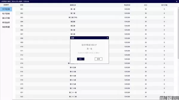 小黑课堂计算机二级Office题库是小黑课堂为全体Office二级学员打造一款的免费的题库软件,如果您正在准备通过计算机二级考试,那么这款小黑课堂计算机二级题库软件一定适合用作备考,它免费提供计算机二级office选择题真题练习以及Word、Ppt、Excel操作的真实训练,全真模拟全国计算机二级等级考试系统,让你提前适应考试内容与环境,在考场上稳定发挥,这么一款优秀且完全免费的计算机二级题库软件,你一定不容错过,欢迎大家前来本站下载使用!
