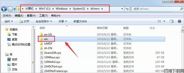 1、进入计算机,进入系统盘,定位到C:\Windows\System32\drivers文件夹,找到etc文件夹,如下图所示;