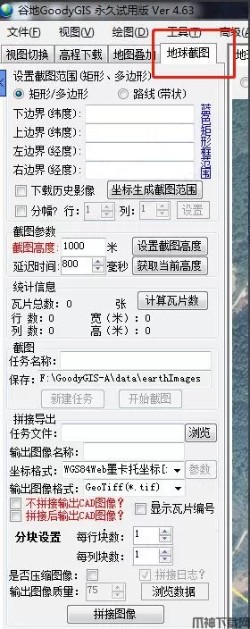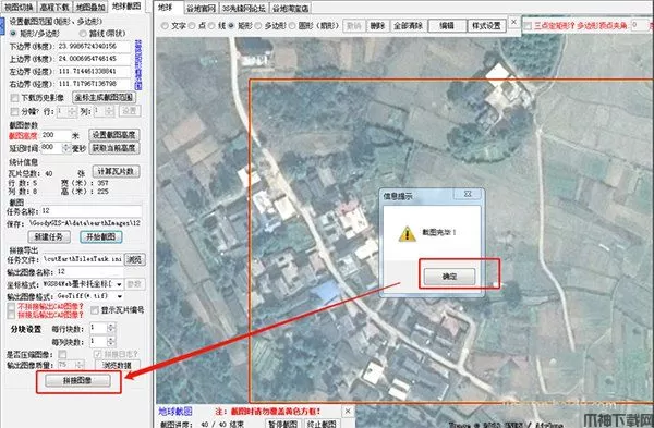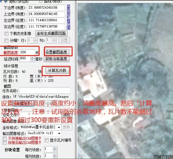 注意:试用版的谷歌地球,瓦片数量不能超过300,超过300要重新设置截图高度。