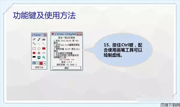 E-Pointer又名红烛电子教鞭,这是一款功能强大的屏幕教学软件,也可以说它是一款电脑黑板软件。