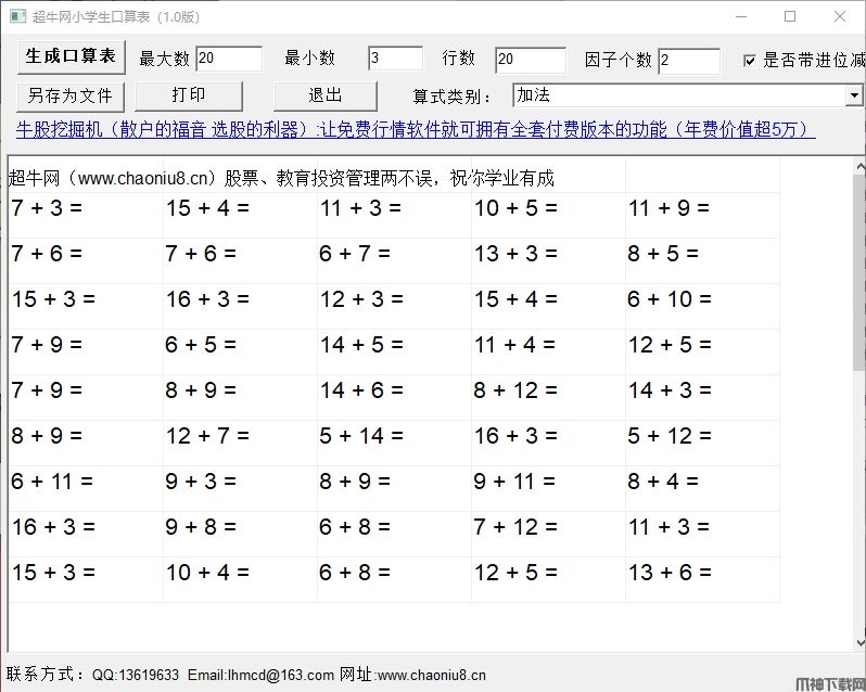 小学生口算题生成器电脑版是一款很方便的四则运算口表生成器。